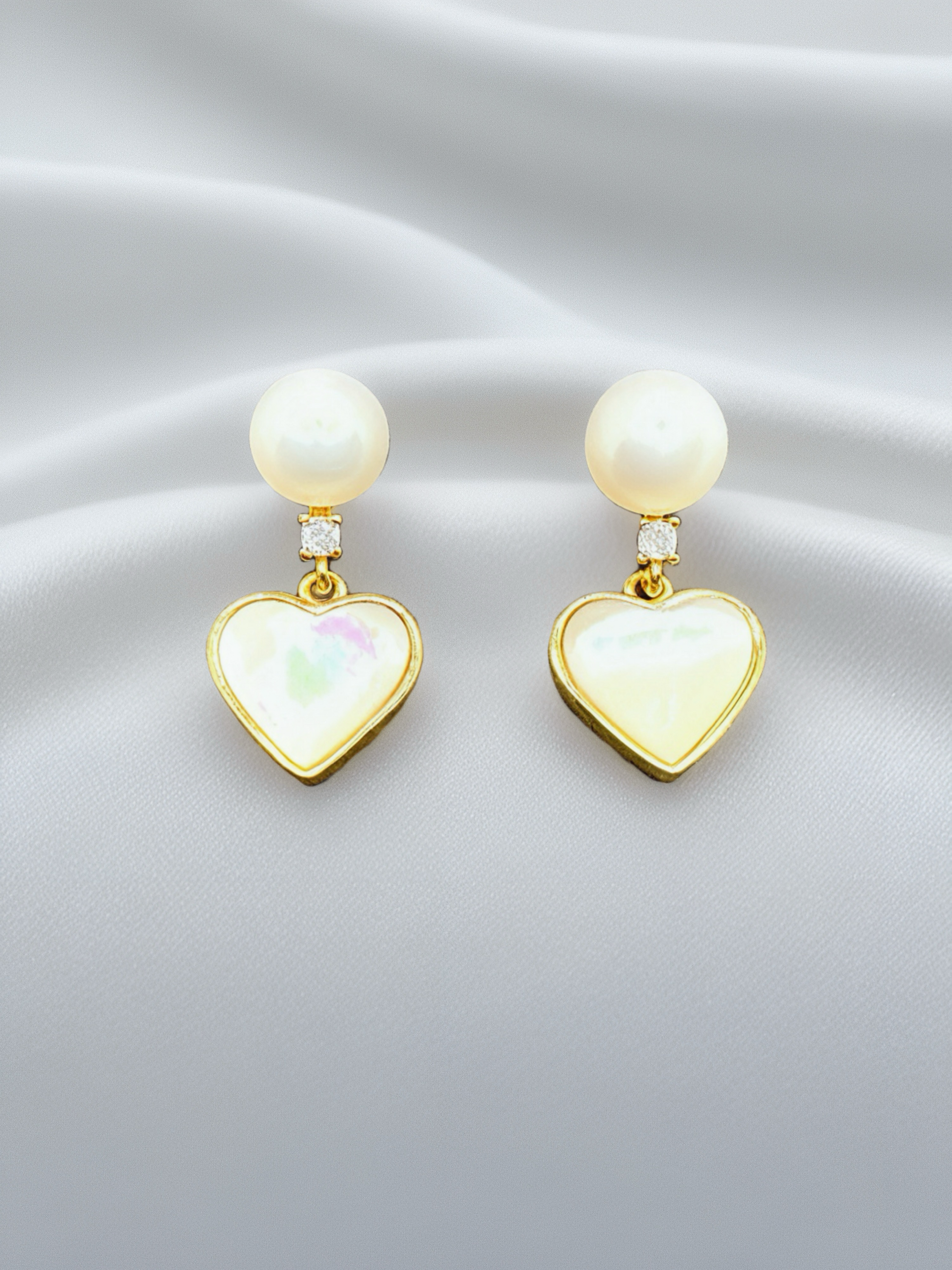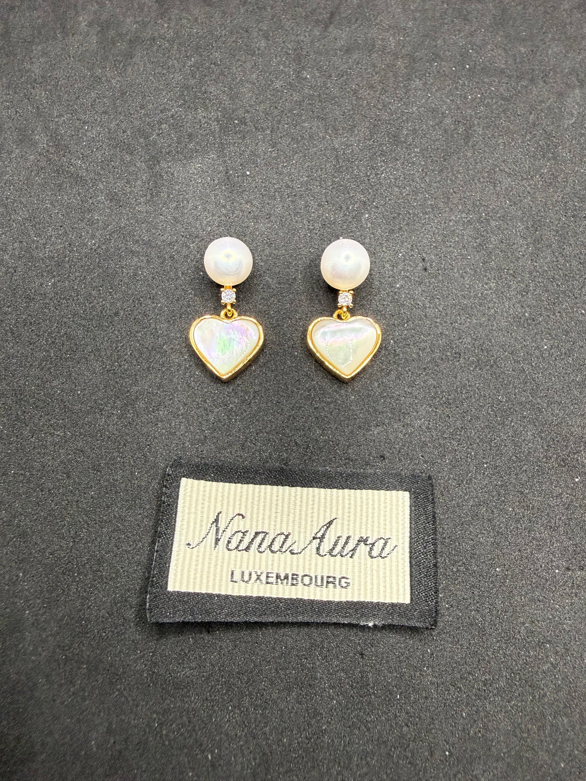 The Amélie Heart Earrings capture soft romance in a timeless silhouette. Featuring a delicate heart-shaped white shell framed in gold-plated metal, each piece is finished with a luminous natural pearl stud and a subtle zircon accent. Gentle, feminine, and poetic, these earrings are perfect for everyday elegance or as a heartfelt gift.
