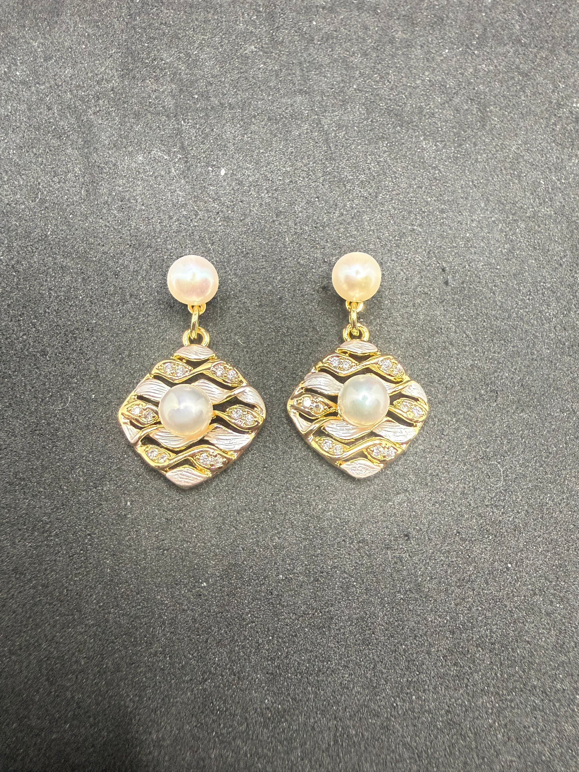 The Aurea Wave Earrings are a refined expression of movement and light. Sculpted in a soft diamond silhouette, flowing wave textures in gold-plated brass are highlighted with delicate zircon accents, while luminous natural pearls sit at the center and stud, creating a harmonious balance of sparkle and softness. Elegant yet distinctive, these earrings add timeless sophistication to both everyday wear and special occasions.